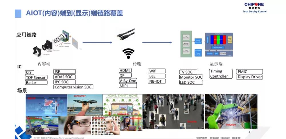 從各個(gè)方向來(lái)看,內(nèi)容采集端需要圖像傳感器CIS、圖像處理端需要ISP、汽車(chē)機(jī)器視覺(jué)的ADAS SOC、監(jiān)控領(lǐng)域的SOC芯片等,傳輸端又分了有線(xiàn)和無(wú)線(xiàn),有線(xiàn)比如像接口技術(shù)HDMI、DP、V-By-One以及MIPI等,還有Wifi、BLE、NB-IOT等,這些都將需要巨大的市場(chǎng)需求。 目前,集創(chuàng)北方聚焦在顯示端,未來(lái)也會(huì)往前端去延伸。在顯示端有計(jì)算處理的芯片,像TV SOC、LED SOC等,還有跟視頻相關(guān)的LCD Driver、電源管理芯片等。張晉芳表示,透過(guò)這樣的芯片技術(shù)需求,可以看出顯示行業(yè)的發(fā)展,給半導(dǎo)體器件帶來(lái)非常大的市場(chǎng)需求。 從面板技術(shù)發(fā)展來(lái)看,LED顯示屏正在經(jīng)歷一個(gè)新的技術(shù)變革,特別是三星在近幾年推出的LED顯示屏The Wall,The Wall基本上做到了MicroLED顯示技術(shù),這樣的LED顯示技術(shù)未來(lái)也會(huì)滲透到高階商用領(lǐng)域,并產(chǎn)生一個(gè)新的藍(lán)海市場(chǎng),同樣它對(duì)顯示驅(qū)動(dòng)芯片提出更高的要求。 同時(shí),在OLED領(lǐng)域,AMOLED有硬屏、折疊屏、軟屏,軟屏對(duì)顯示芯片的技術(shù)要求,以及現(xiàn)在AMOLED在產(chǎn)能在良率上還有很多的問(wèn)題,這些問(wèn)題的解決也要依賴(lài)于芯片技術(shù)的改變來(lái)提升整個(gè)產(chǎn)業(yè)鏈。 可見(jiàn),無(wú)論是從面板新技術(shù)的誕生,還是從內(nèi)容處理要求的提高,都對(duì)顯示芯片的需求提出了新的要求,同時(shí)也會(huì)帶動(dòng)市場(chǎng)需求增長(zhǎng)。 2020年受新冠肺炎疫情影響,全球顯示驅(qū)動(dòng)芯片需求量實(shí)現(xiàn)同比兩位數(shù)增長(zhǎng)達(dá)到80.7億顆,其中,LDDI出貨量為123kWPM,占DDIC出貨量的52%;LCD顯示驅(qū)動(dòng)出貨量為73kWPM,占DDIC出貨量的28%;OLED顯示驅(qū)動(dòng)出貨量為40kWPM,占DDIC出貨量的20%。 2021年,由于電視面板的高分辨率趨勢(shì)確立,DDIC總需求將增長(zhǎng)至84億顧。后續(xù)隨需求穩(wěn)定和技術(shù)升級(jí),產(chǎn)能需求量將持續(xù)走高。顯示芯片對(duì)外依存度高,綁定式模式發(fā)展才有出路
