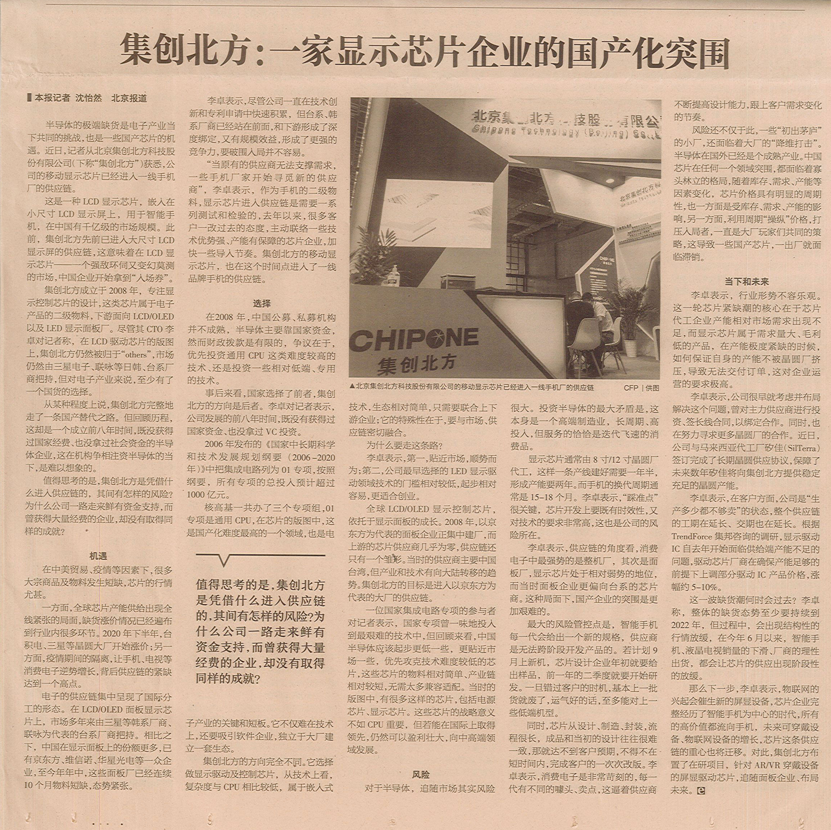 《經(jīng)濟觀察報》集創(chuàng)北方:一家顯示芯片企業(yè)的國產化突圍