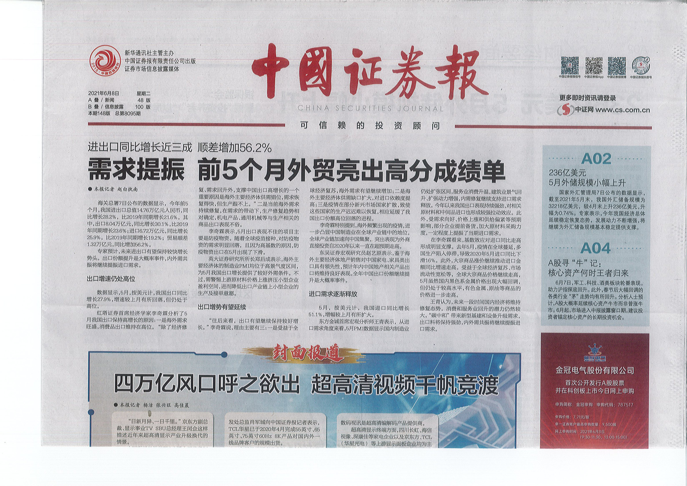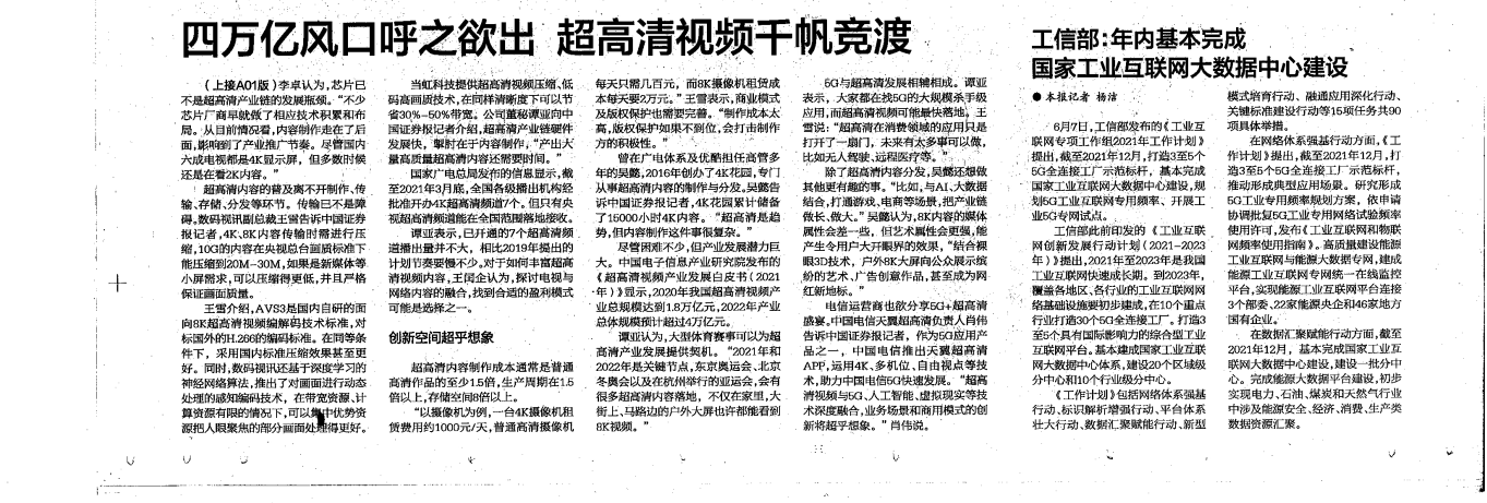 《中國(guó)證券報(bào)》:四萬(wàn)億風(fēng)口呼之欲出 超高清視頻千帆競(jìng)渡