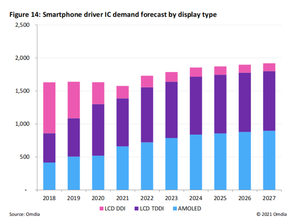 TDDI方案因架構(gòu)的高度集成性,具有顯示屏輕薄化,降低成本,簡化供應(yīng)鏈等優(yōu)勢(shì),成為了目前手機(jī)LCD屏的主流方案,從2020年LCD TDDI方案在智能手機(jī)顯示觸控應(yīng)用占比已超過50%。